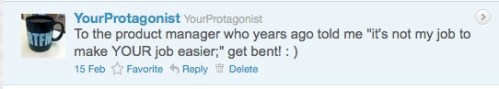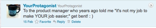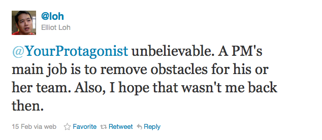 I was a little floored by such a baldly disinterested response. Instead of interpreting it as rudeness, I decided to assume that this was the way all product managers operated and that I must have crossed a line.